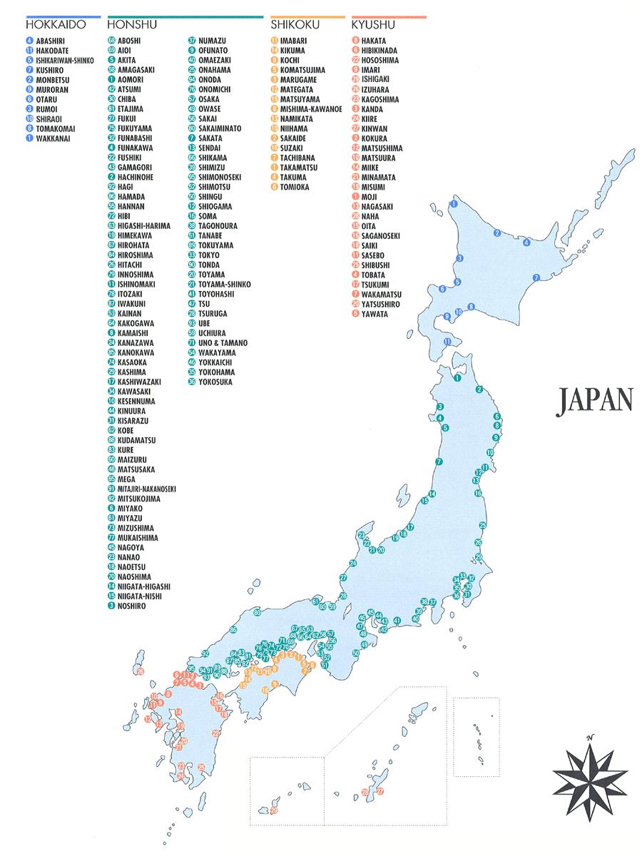 Japonsko porty mapě